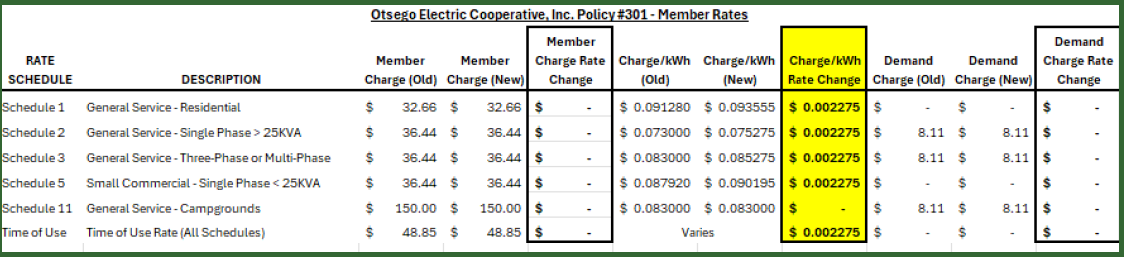 efforts to maintain the infrastructure and ensure the sustainability of our services, our Board of Directors has voted to increase our kilowatt-hour (kWh) charge. This increase will start with the March 2026 billing cycle. For our average residential user, this will amount to about a two percent